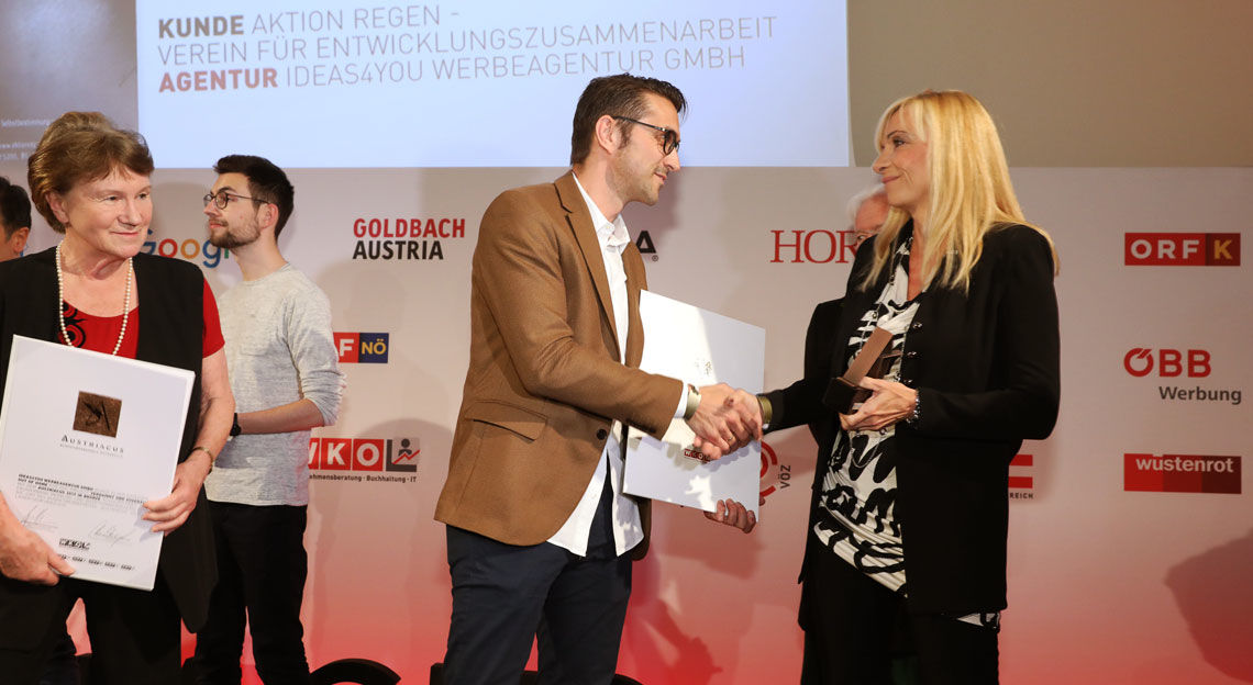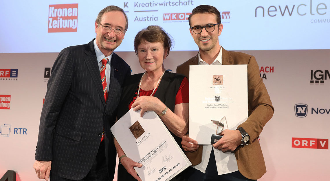 Und nicht zu vergessen den AUSTRIACUS, den Bundeswerbepreis Österreich. Diesen tragen wir natürlich schon mit großem Stolz. Aber noch mehr sind wir stolz auf den großen Kunden-Erfolg der Kampagne und der Werbemittel, mit dem wir den AUSTRIACUS gewinnen konnten.
